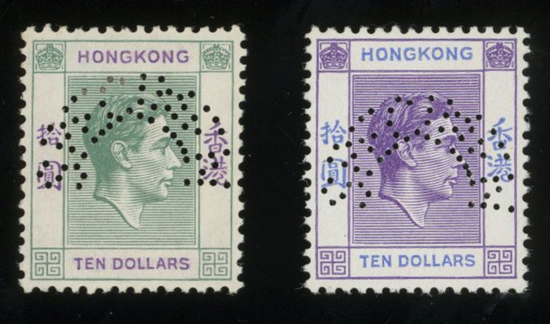 1938 K.G.VI the 1st issue (pre-war print), 1c. to $10, complete perfin specimen set of thirteen and 1946 K.G. VI the 3rd issue (post war print), 1c. to $10, complete perfin specimen set of ten, very fine.