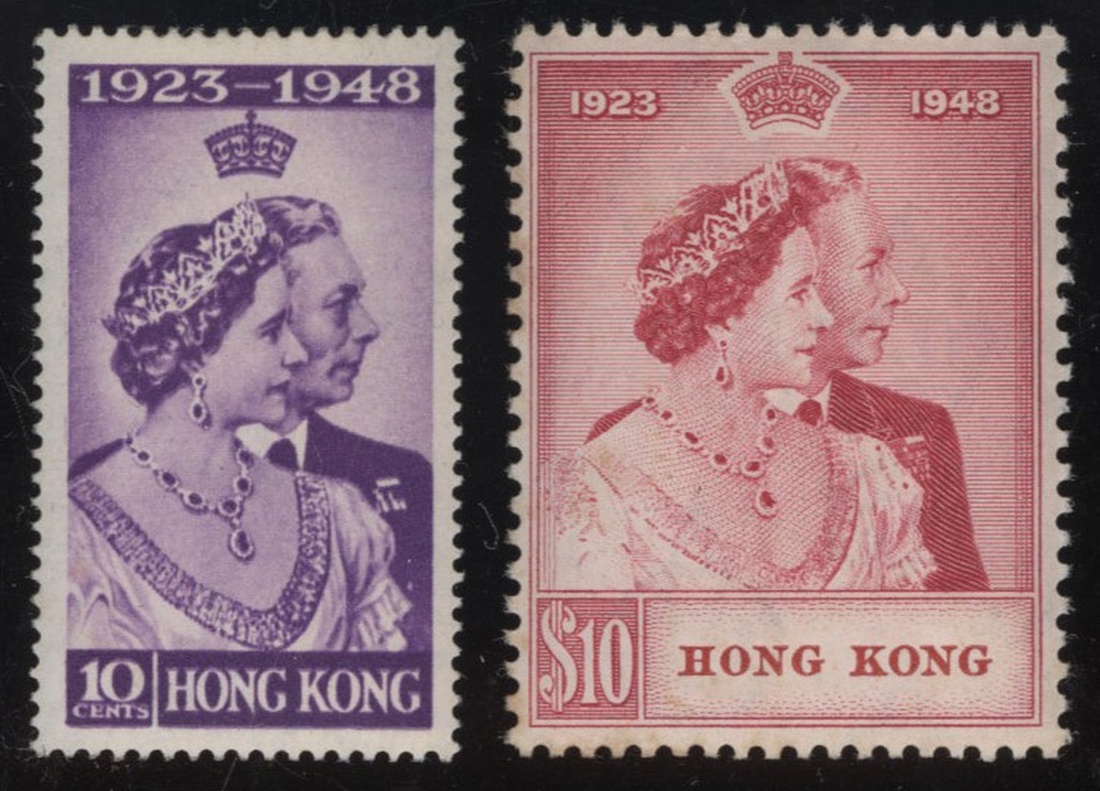 1948 (22 Dec.) Royal Silver Wedding 10c. and $10 unmounted mint, $10 heavy toned.
