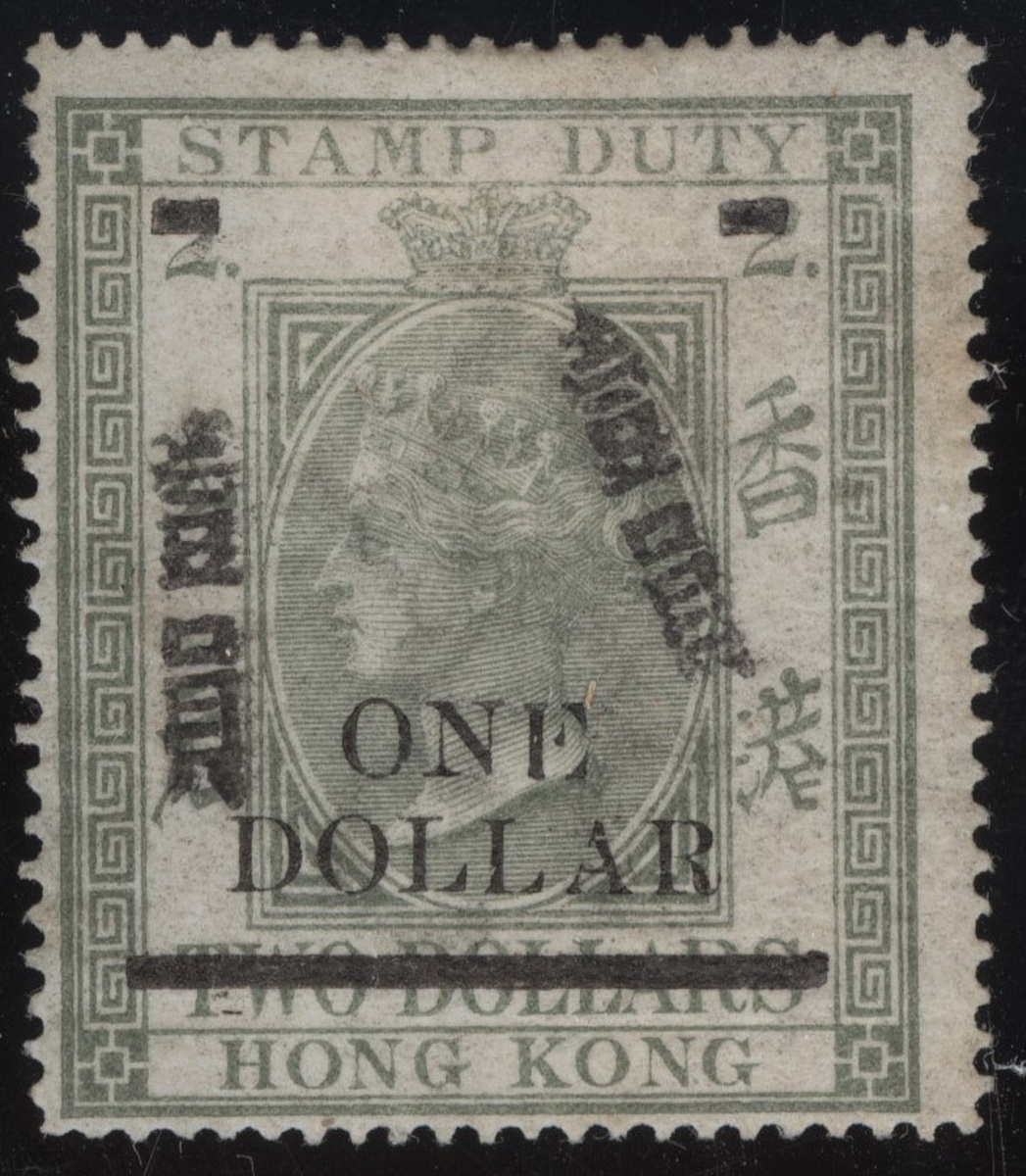 1897 Q.V. surcharge with Chinese character $1 on $2 olive-green, mint with part of original gum, fine. Yang F10