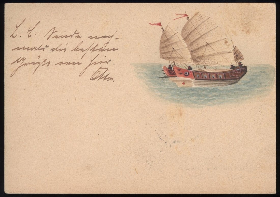 1898 (6 Nov.) 4c. stationery card to Germany (31.12), showing clear arrival c.d.s. alongside and hand painting on reverse, fine.