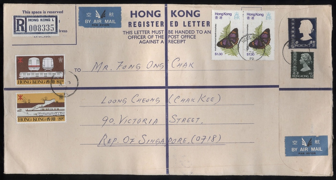 1979 (3 Nov.) QEII $1 K size registered letter envelope to Singapore bearing 20c., $1 and $1.30(3) tied by Hong Kong c.d.s., fine.