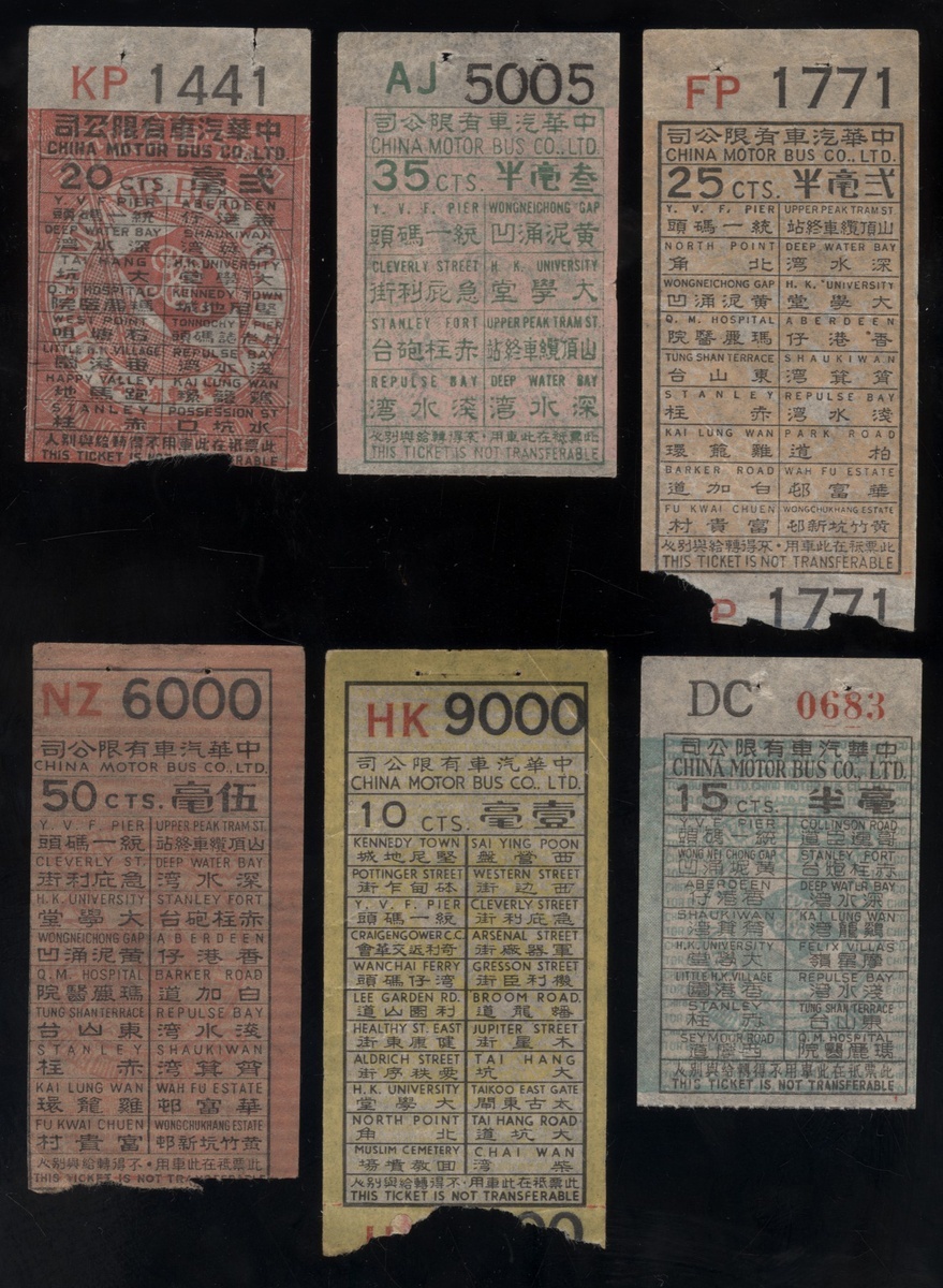 1950-1960s five pieces lucky number fare of China Motor Bus , and one regular number fare.