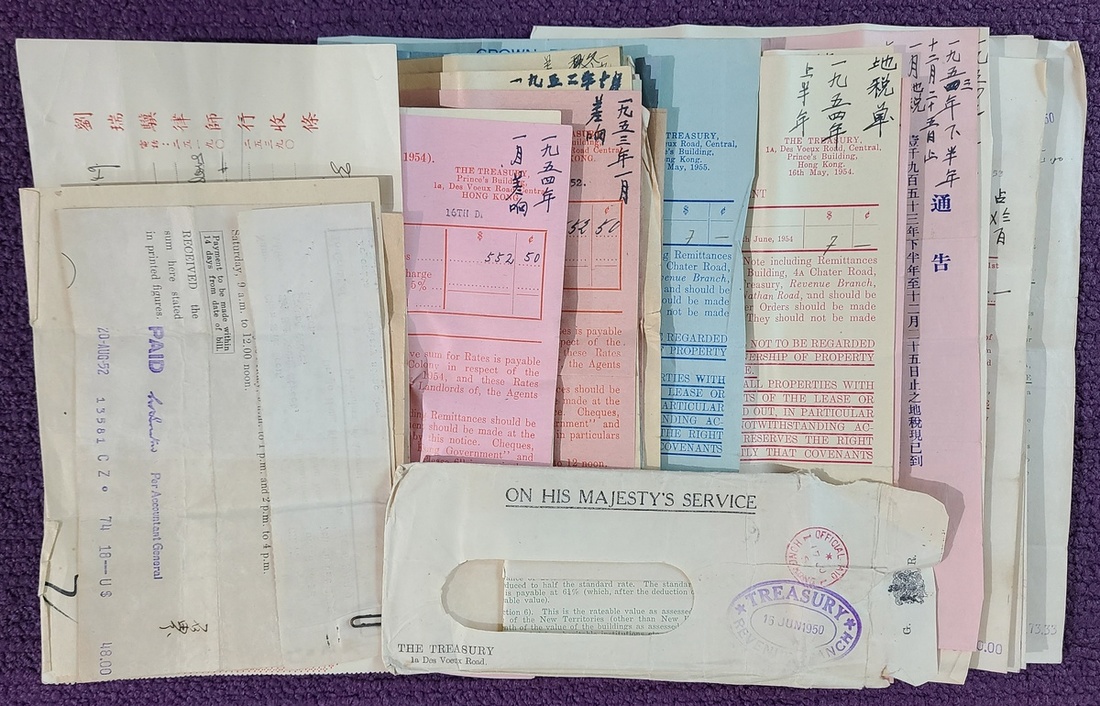 1950s A group of about 20 Hong Kong Land Tax and Rates receipts.