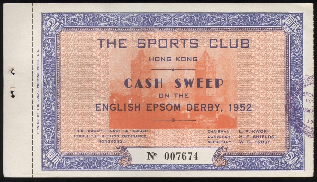 1952 the Cash Sweed on the English Epsom Derby. from The Sports Club, Hong Kong. No.007674.