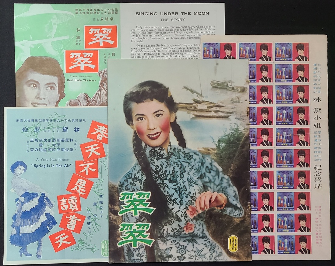 1953 A precious special issue of the first film "Duel Under the Moon" starring Lin Dai and a sheet of story of movie. And also Lin Dai starred in "Spring is in Tha Air" story sheet, plus a Lin Dai commemorative sticker.