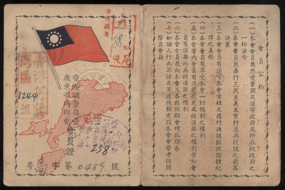 1954 Hong Kong Tiaojingling camp Guangdong Association Membership Card, which has a photo of the holder. Rare.