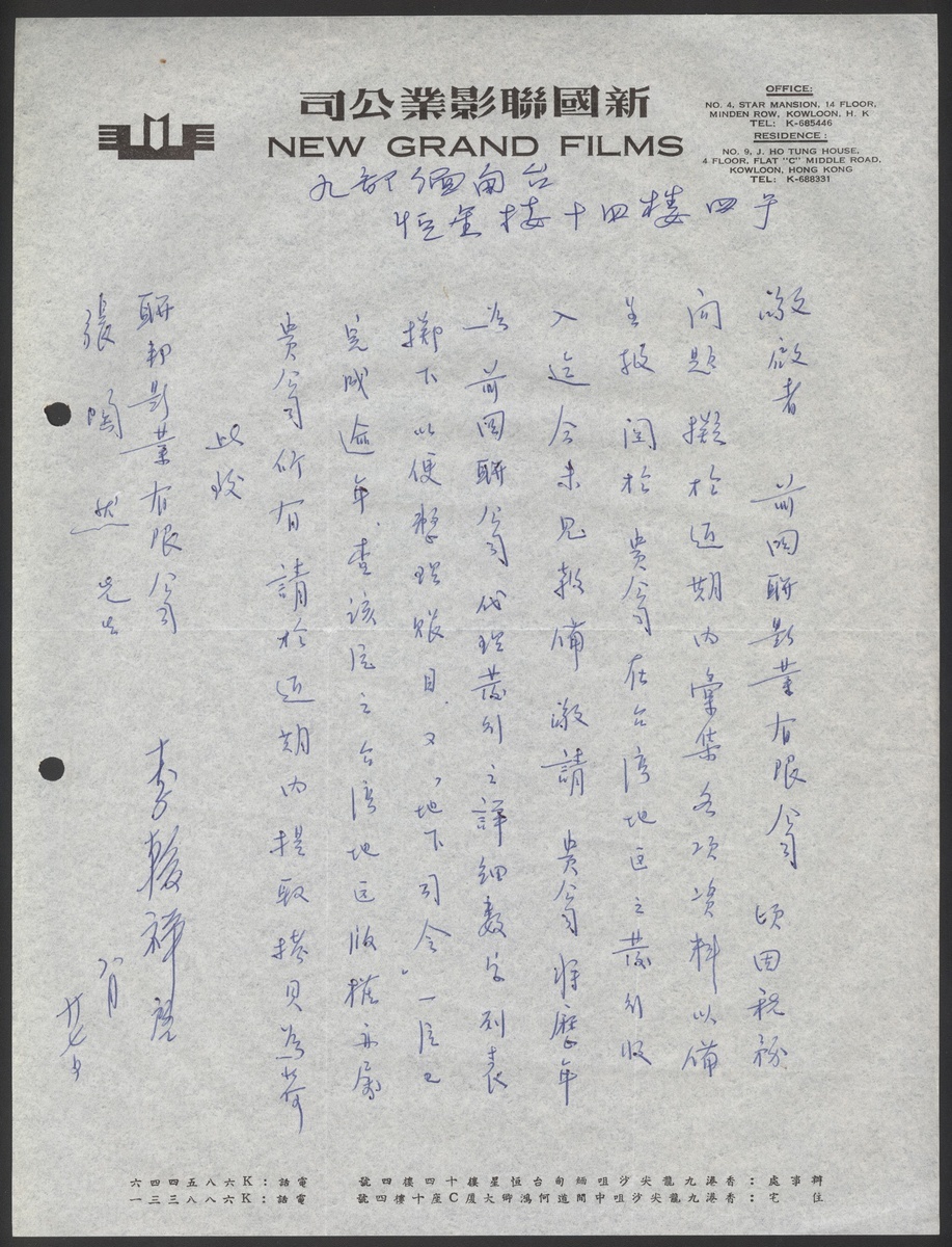 1960 A letter from the famous director Li Hanxiang