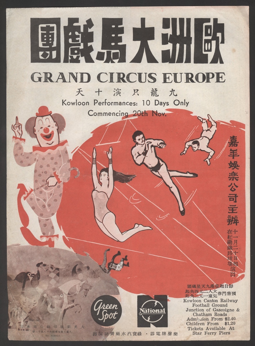 1960-1970s Promotional leaflet for "The Grand Circus Europe" in Hong Kong. Rare, in good condition. Size: 19.3x26.5cm