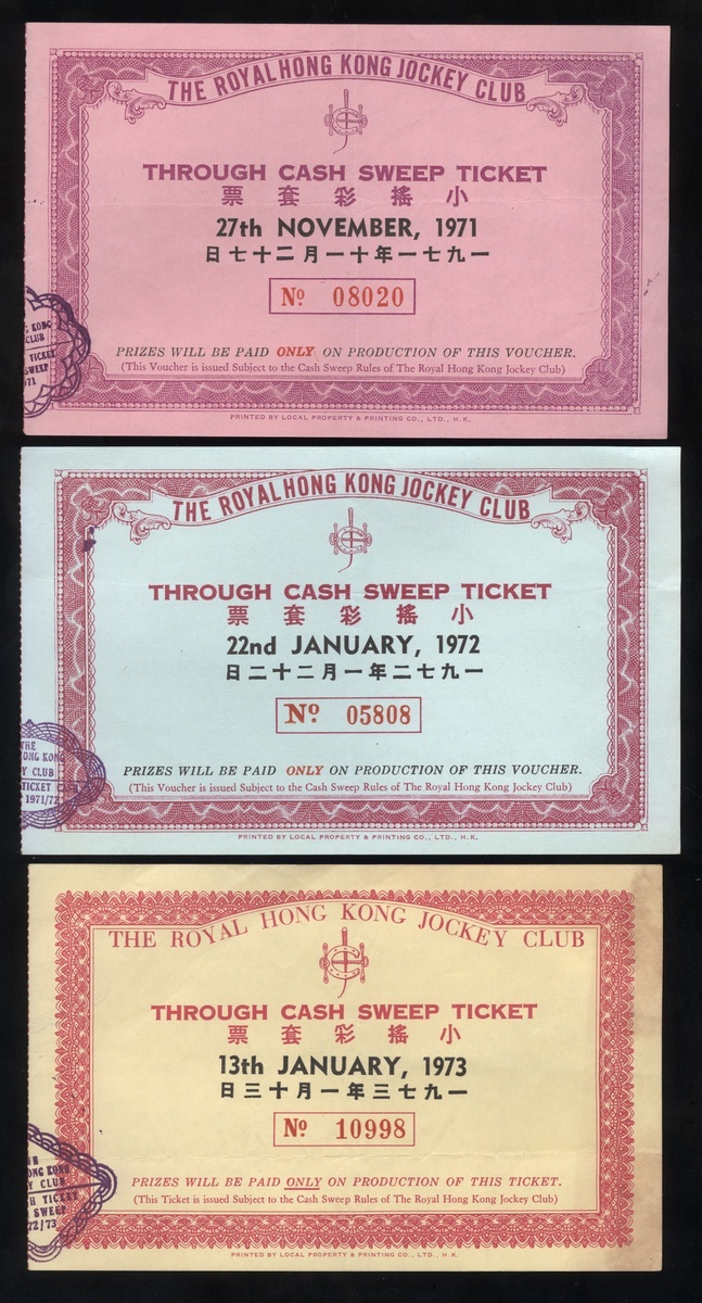 1971,73 and 73 three Through Cash Sweep Ticket, rare.
