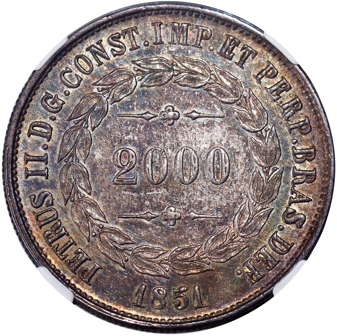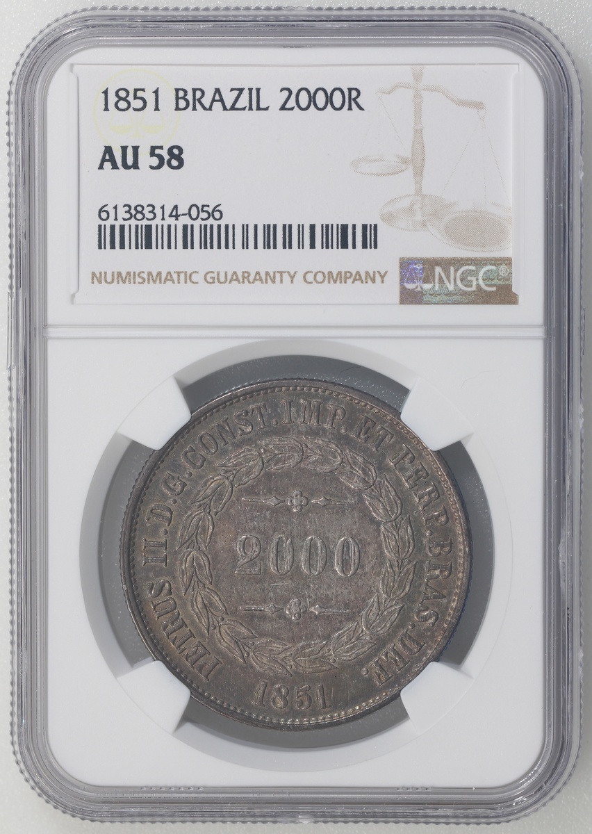 1851年巴西2000雷爾,NGC AU58,#6138314-056