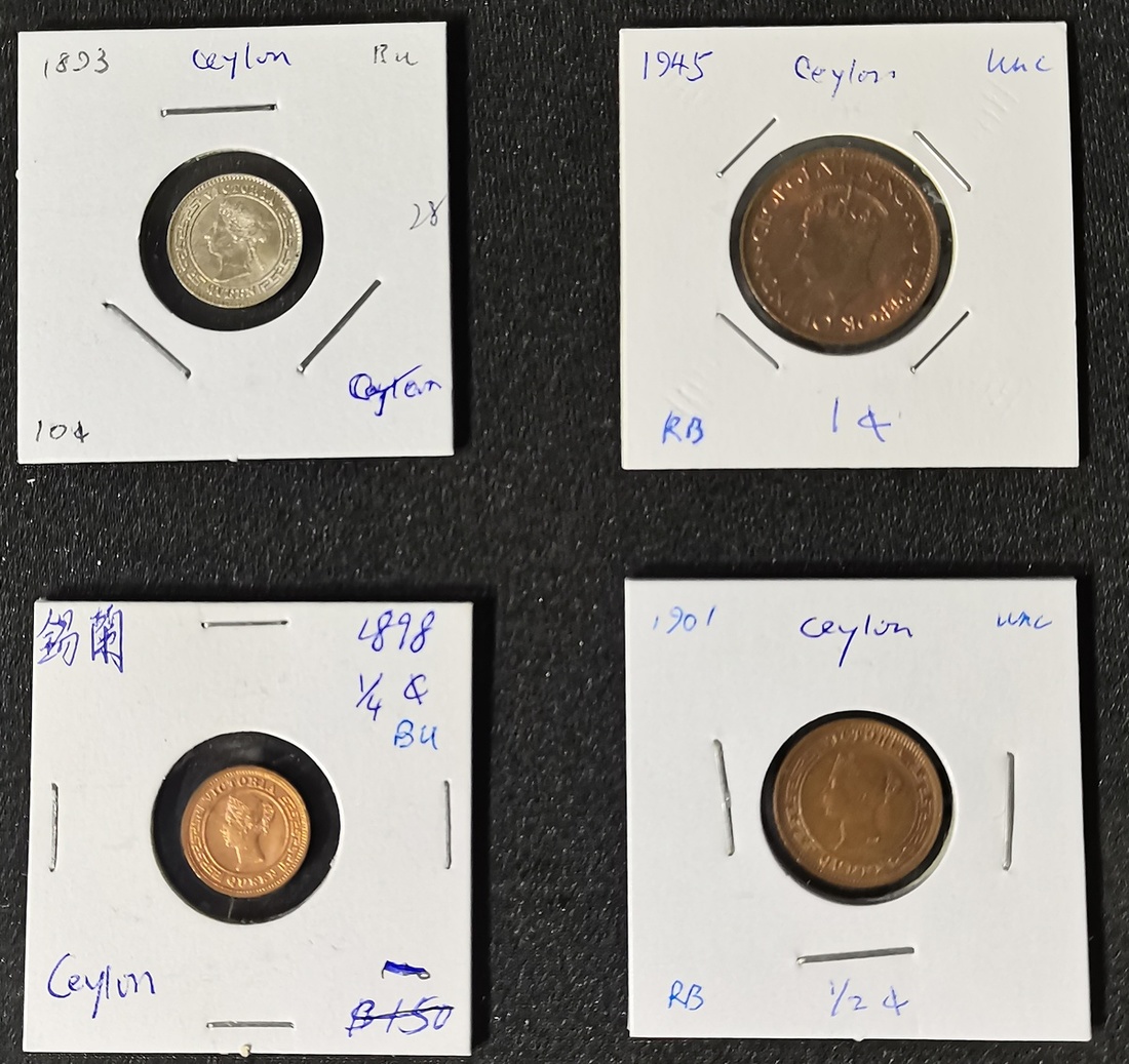 Ceylon, a group of 4 coins, consists of: 1/4 cent, 1898,
