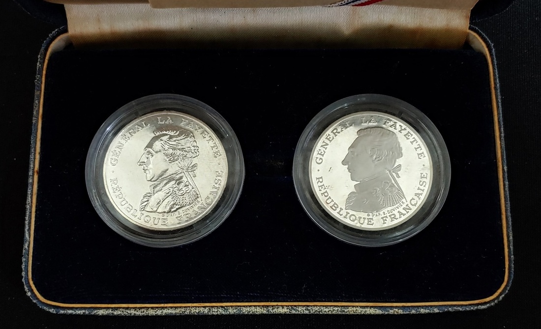 France, a set of piedfort 100 francs, 1987, General Lafayette,