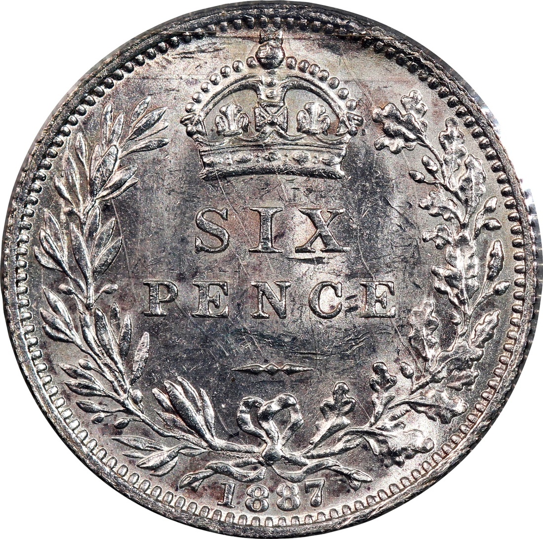 United Kingdom, silver 6 pence, 1887, Crowned and veiled bust ('Jubilee Head') of Queen Victoria on obverse, reverse with crowned denomination within wreath,