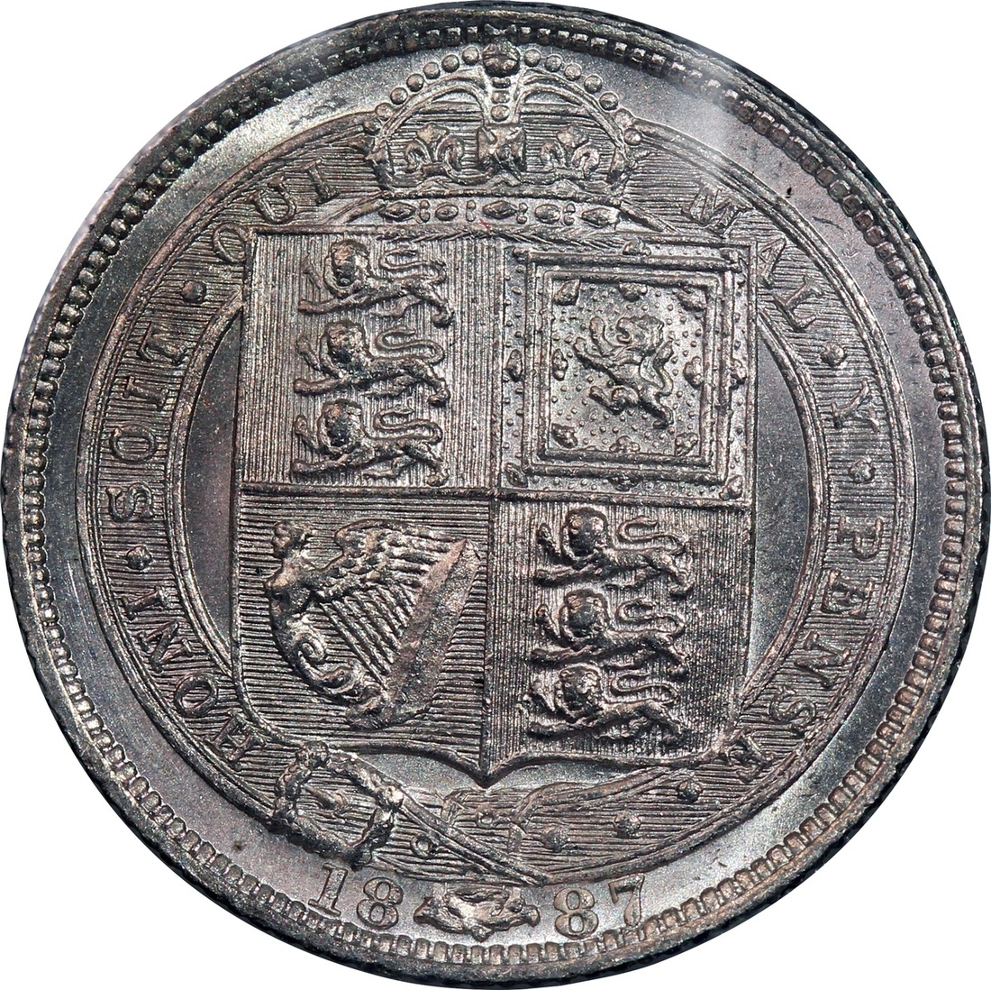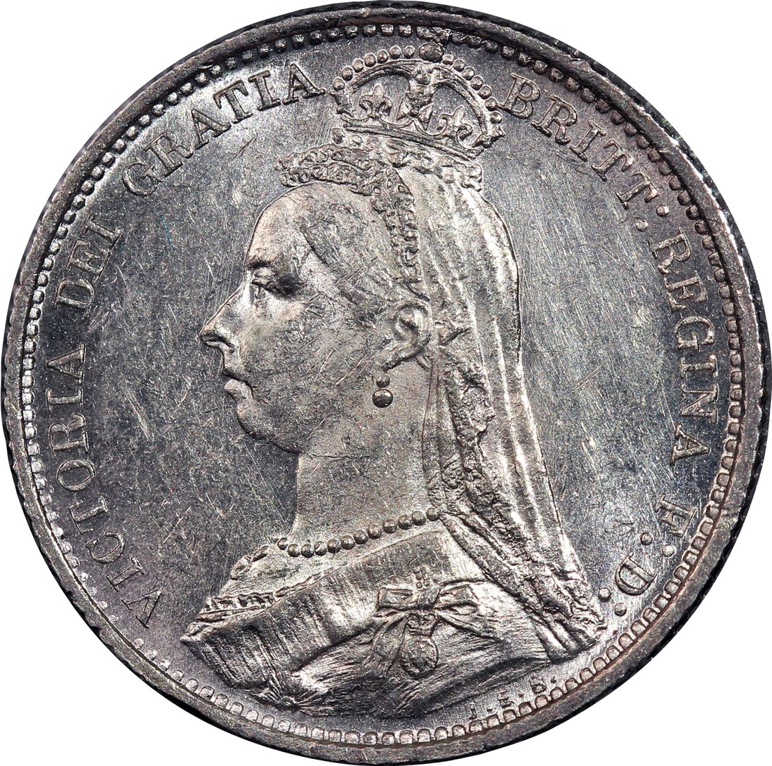 United Kingdom, silver 6 pence, 1887, Crowned and veiled bust ('Jubilee Head') of Queen Victoria on obverse, reverse with crowned quartered shield of arms within Garter,