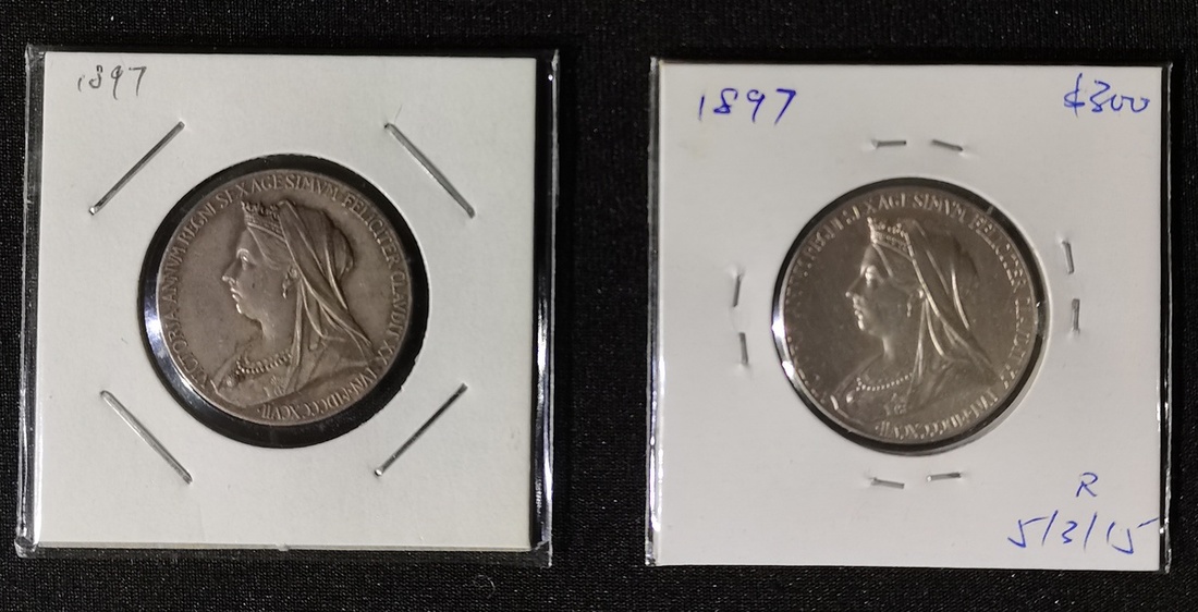 Great Britain, a pair of silver jubilee medals, 1897, about uncirculated (2).