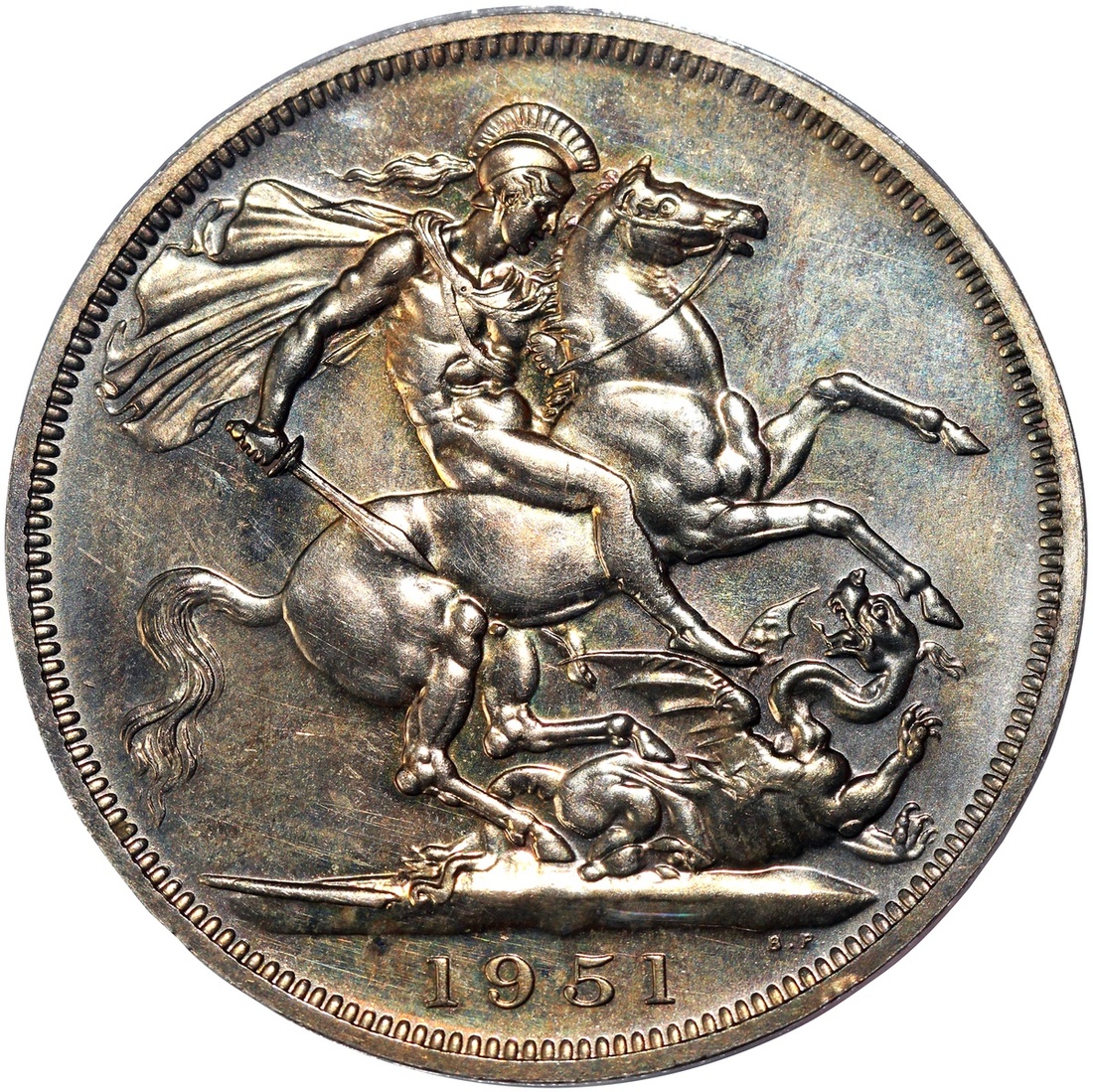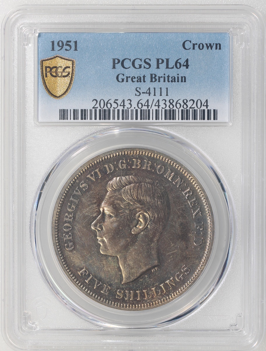 1951年英國克朗銀幣,PCGS PL64,帶悅目金黃包漿,#43868204