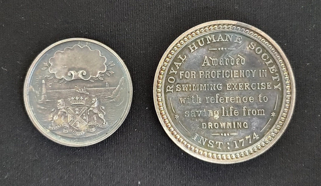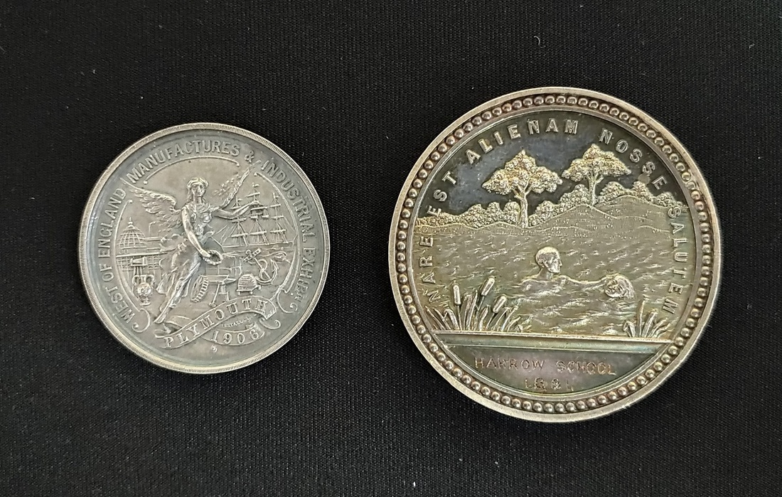 2: silver, Royal Humane Society, 'Awarded for Proficiency in Swimming Exercise with reference to saving life from drowning', Harrow School, 1891,