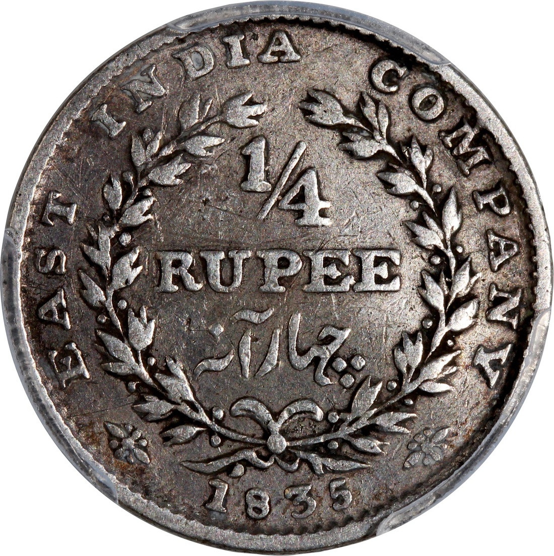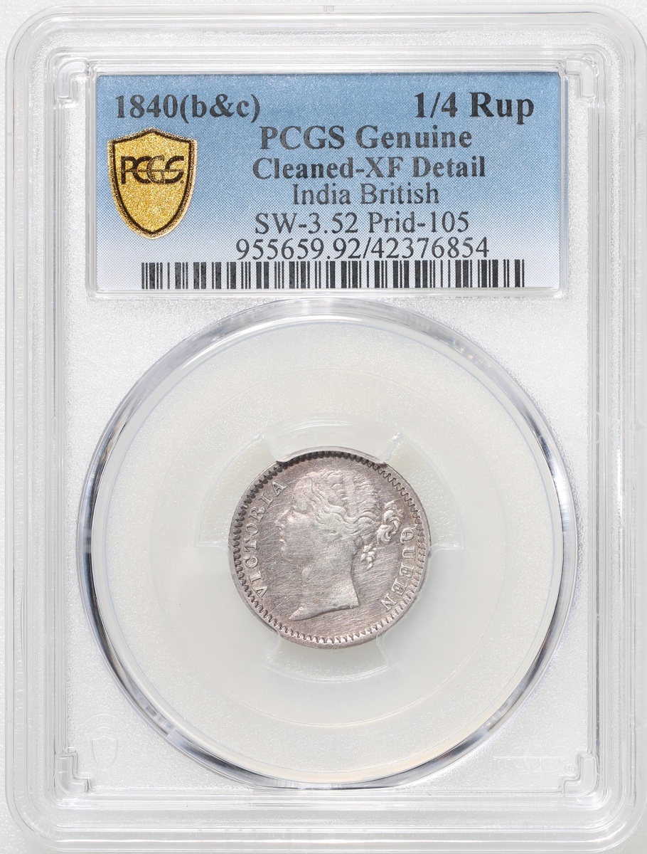 英屬印度1/4盧比銀幣2枚一組,包括1835(B)及1840(C或B),評PCGS VF Detail有彎及XF Detail有清洗,#42376853-4