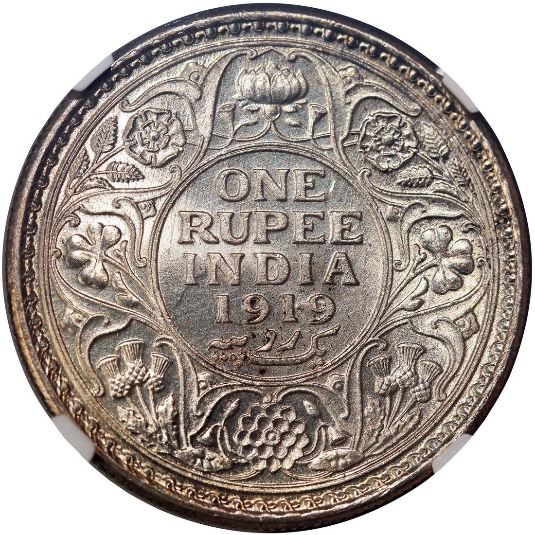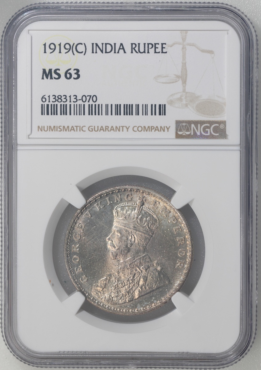 India, silver rupee, 1919(C), NGC MS63, #6138313-070.