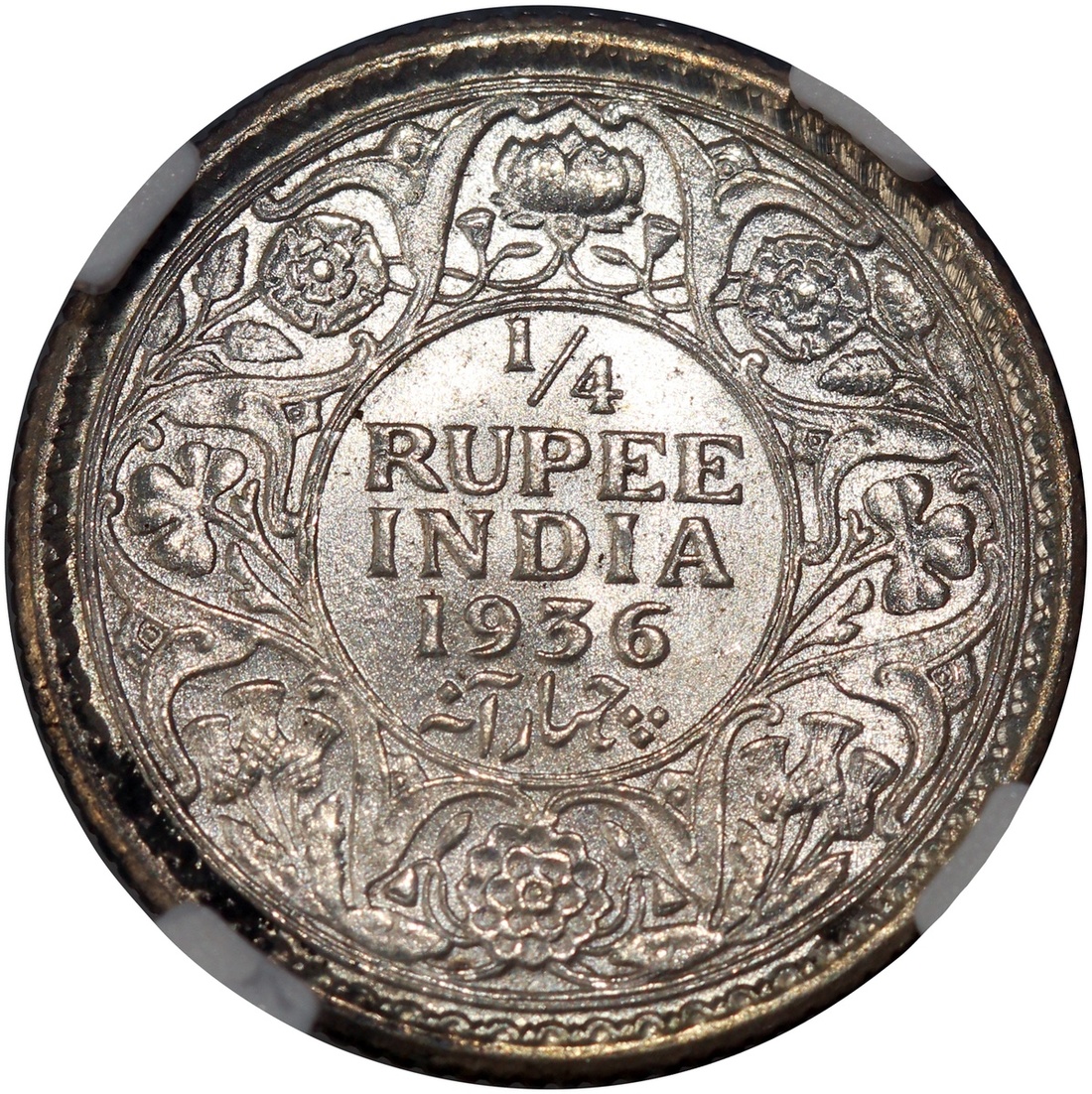 India, silver 1/4 rupee, 1936(C), NGC MS64, #4970637-368.