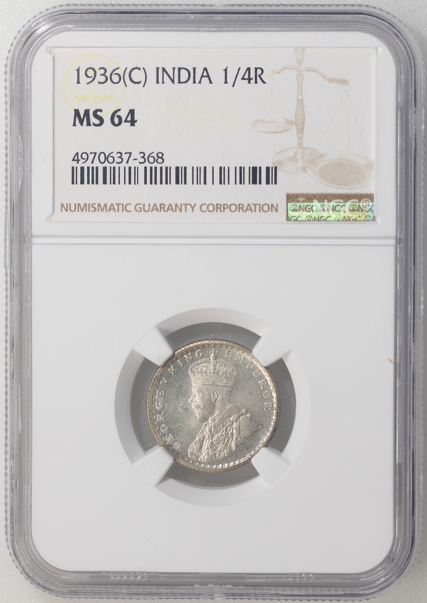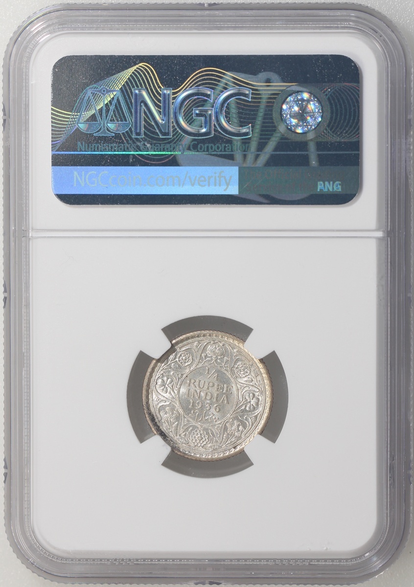 1936(C)英屬印度1/4盧比銀幣,NGC MS64,#4970637-368