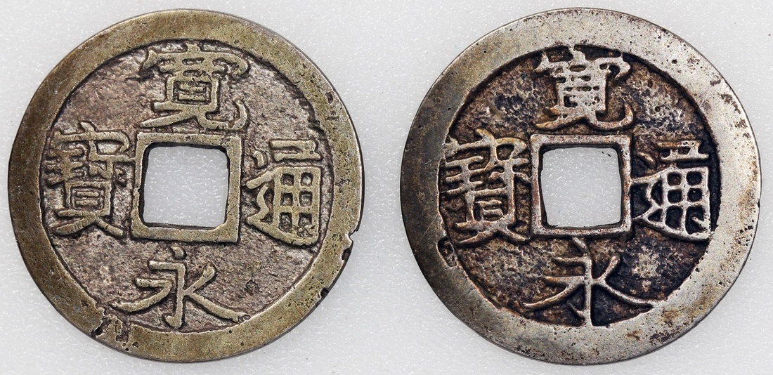 Japan, a pair of Kannei-Tsuho, Edo period, unknown material, very fine or so, viewing recommended (2).