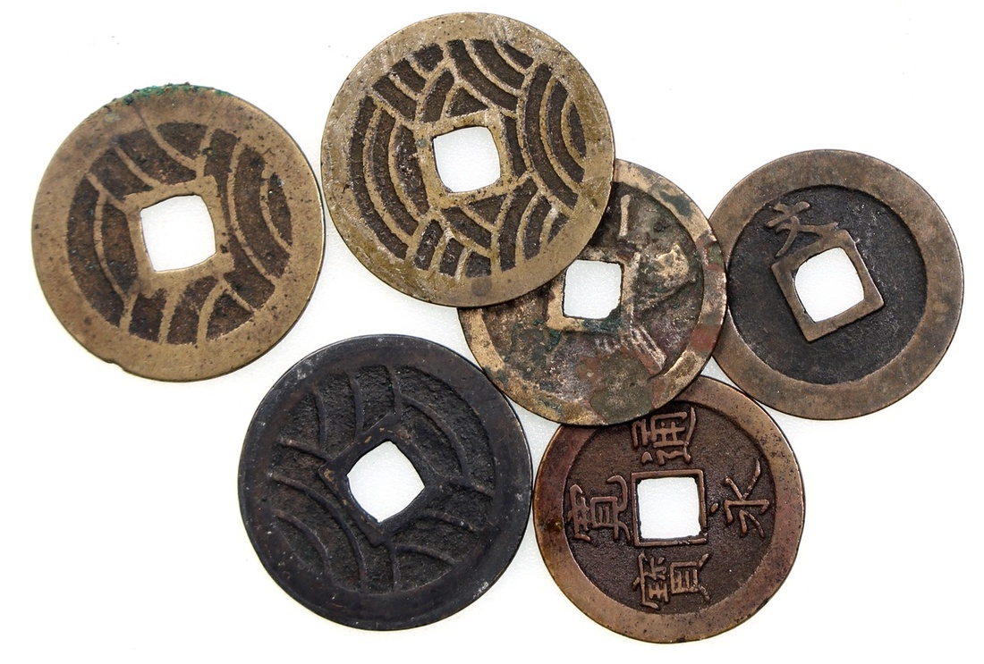 Japan, a group of 6x copper coins, consists of 5x Kan-ei Tsuho, Edo period, and 1x Genroku kaichin, very fine or so, viewing recommended (5).