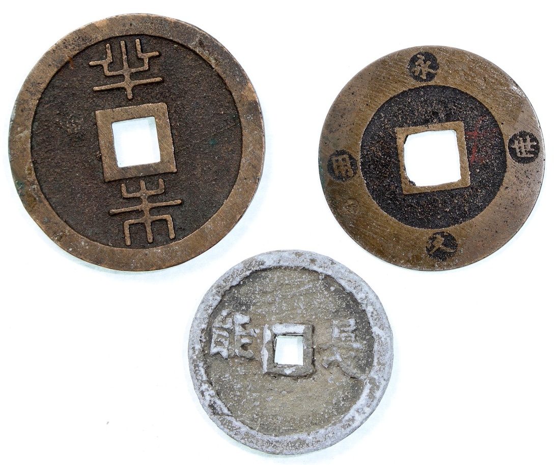 日本銅幣一組3枚,包括寶永通寶,琉球通寶及寬永通寶,AF,建議預覽