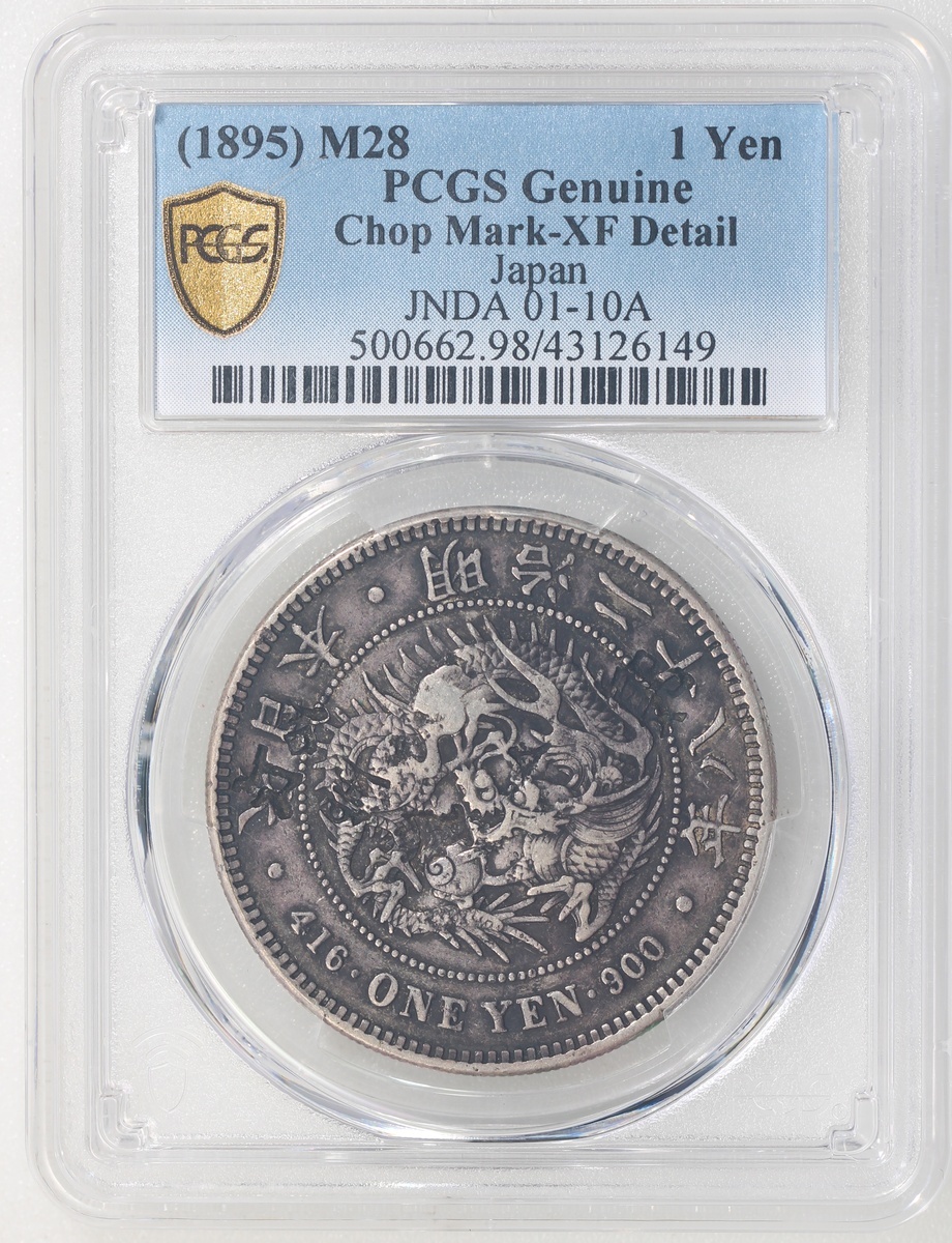 Japan, silver 1 yen, Meiji Year 28 (1895), (JNDA 01-10A), PCGS XF Detail (Chop Mark), Cert. #43126149