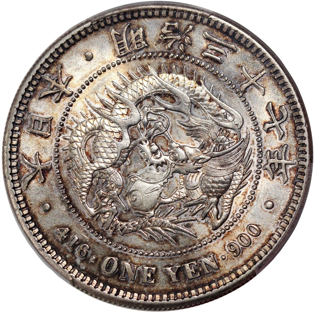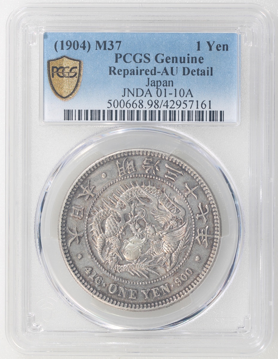 Japan, silver 1 yen, Meiji Year 37 (1904), PCGS AU Detail (Repaired), Cert. #42957161