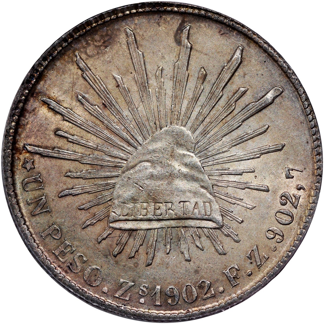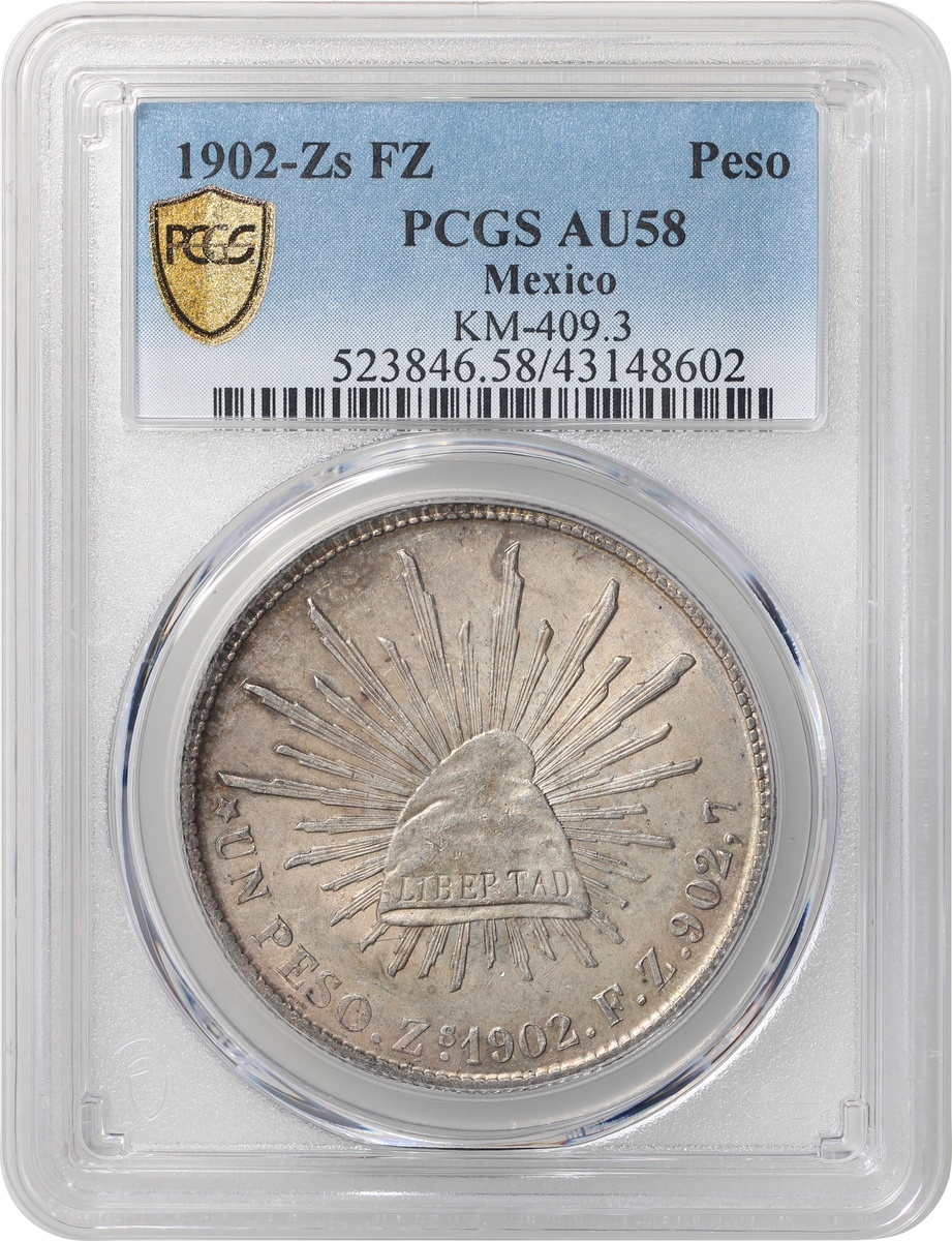 Mexico, silver Peso, 1902-Zs FZ, (KM-409.3), PCGS AU58, #43148602.