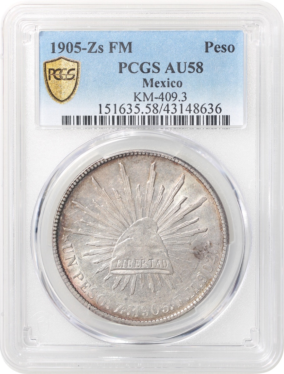 Mexico, silver Peso, 1905-Zs FM, (KM-409.3), PCGS AU58, #43148636.
