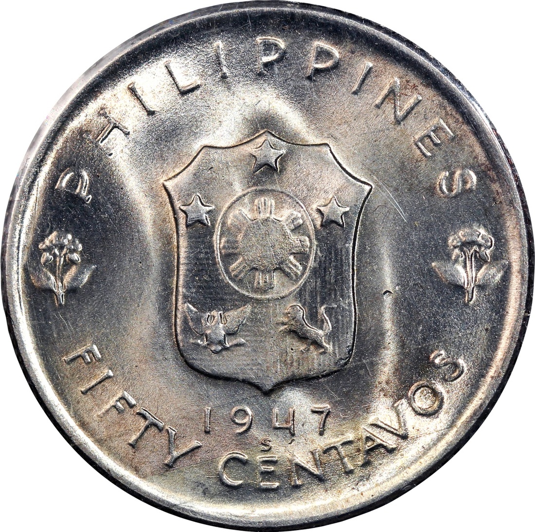1947年美屬菲律賓50分,菲律賓解放紀念幣,AU,帶原光