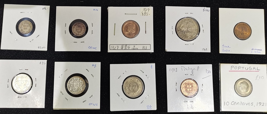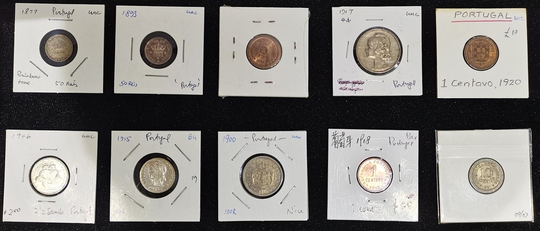 1877-1946年葡萄牙錢幣10枚一組,包括銀幣4枚,銅幣3枚及鎳銅幣3枚,面值包括50雷爾至 2 1/2盾,品相不一,EF至AU,建議預覽