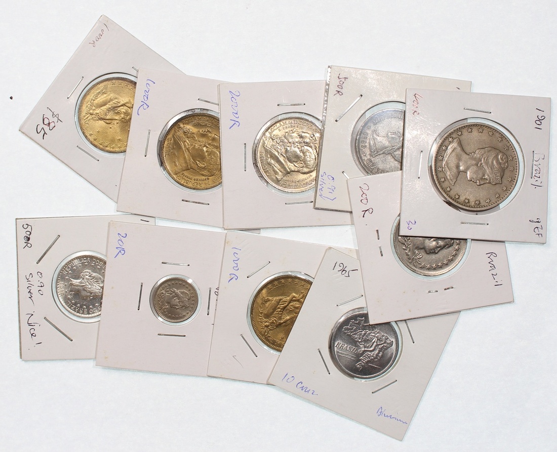 Brazil, a group of 10x coins, from 10 cruzeiros to 2000 reis, 1889-1965, 1901 400 reis good extremely fine, 1889 500 reis about uncirculated, the rest uncirculated (10).