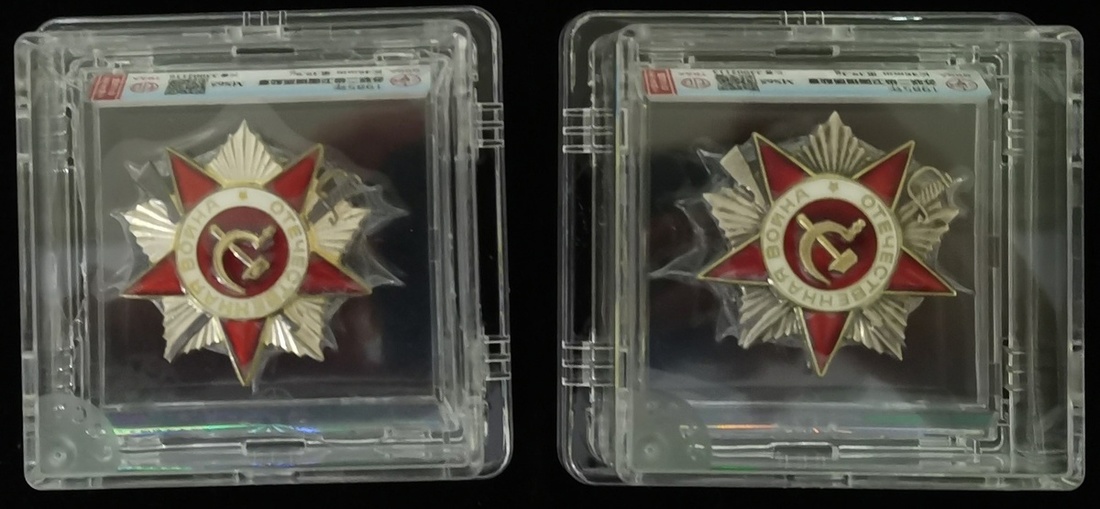 1985年蘇聯愛國獎章2枚,帶琺琅質,均經GBCA封套,UNC