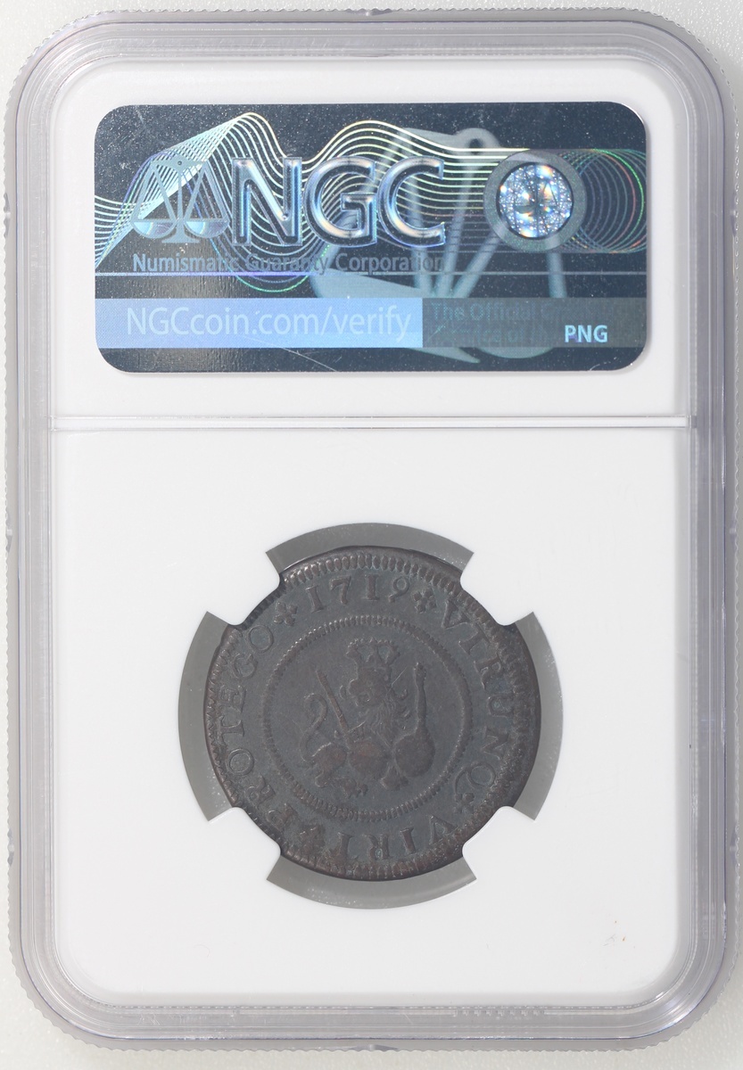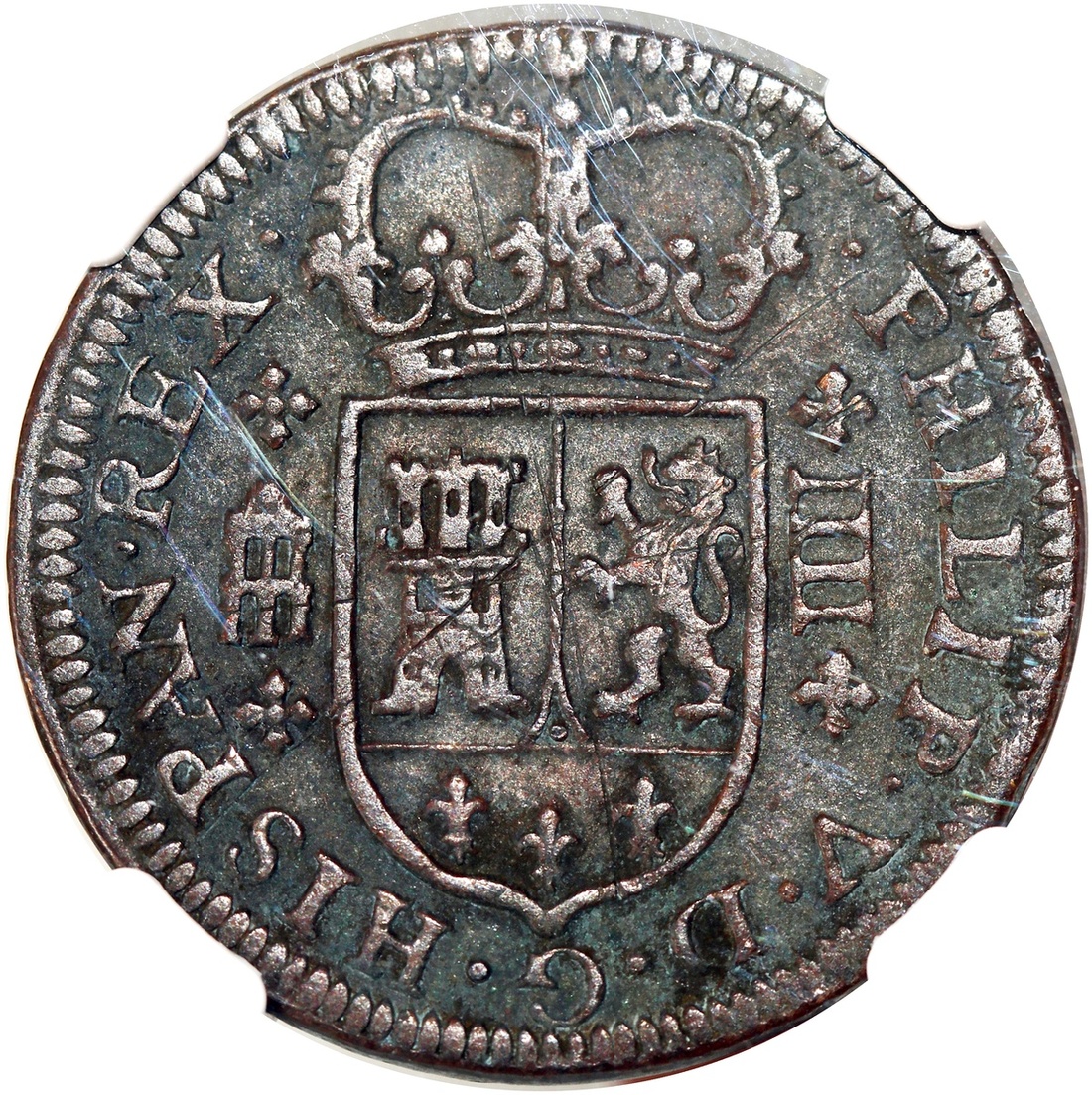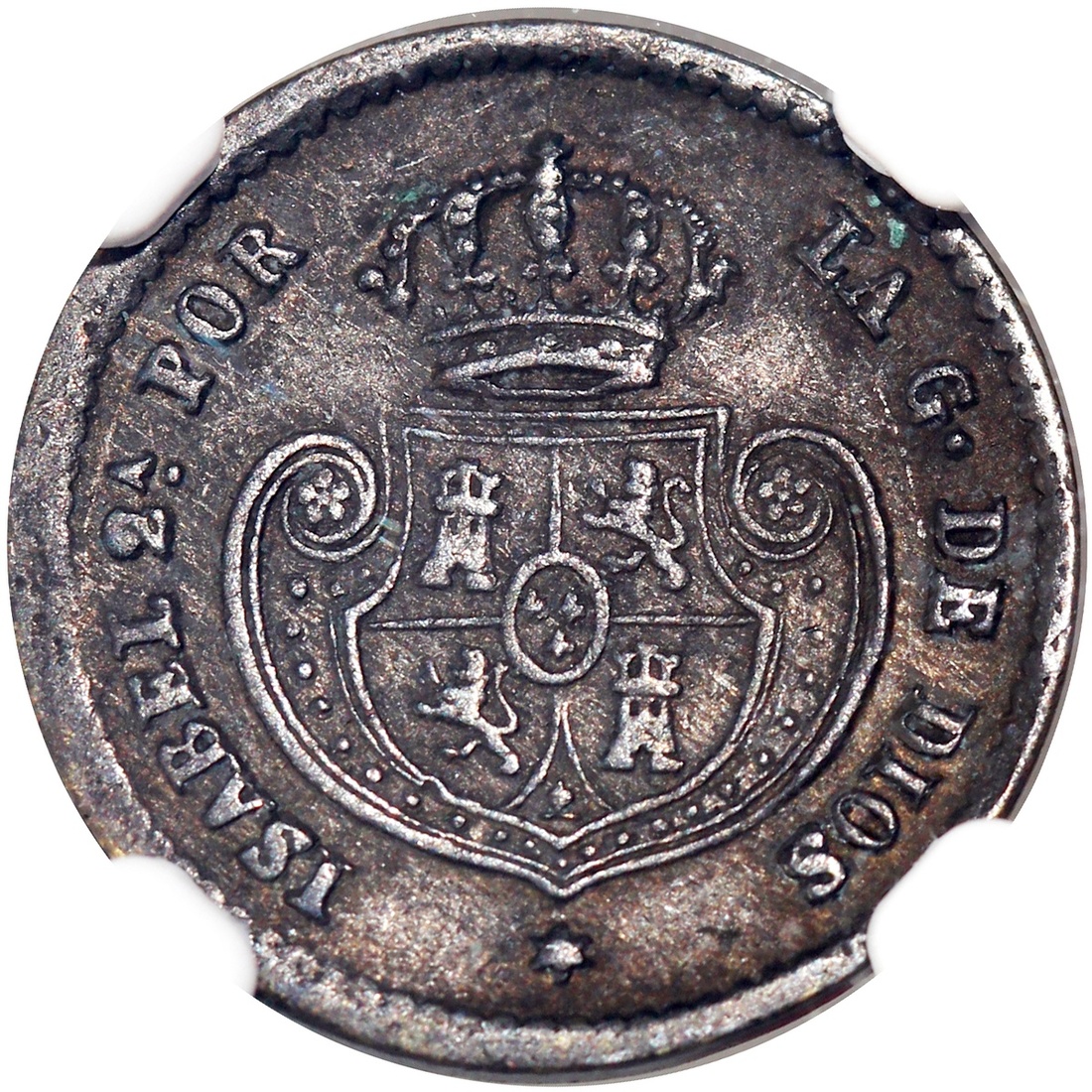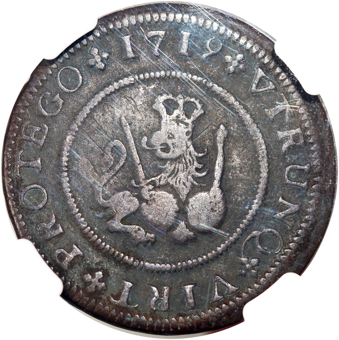 西班牙錢幣2枚一組,包括1853年1/20 real及1719年4馬拉維迪斯,塞哥維亞地名,分別評NGC XF Details有環境損害及VF Details有環境損害,#4623128-052及#4623128-058