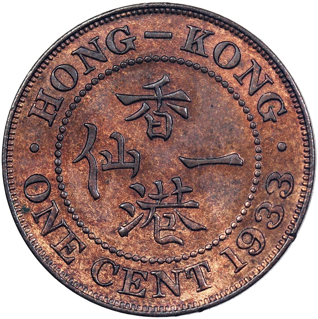 Straits Settlements, copper 1 cent, 1875 and 5 cents, 1900, also Hong Kong, 1 cent, 1934 and 10 cents, 1933,