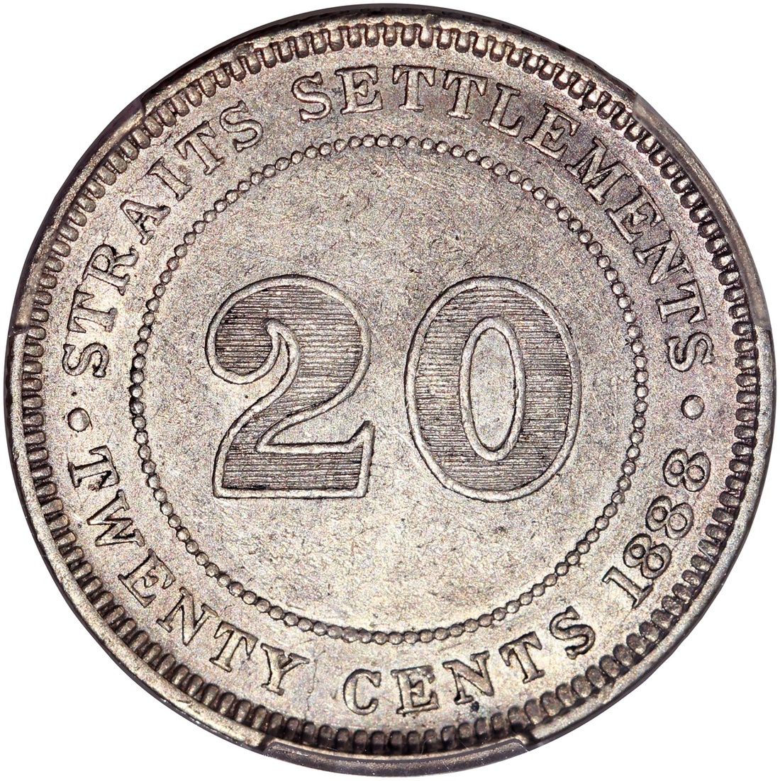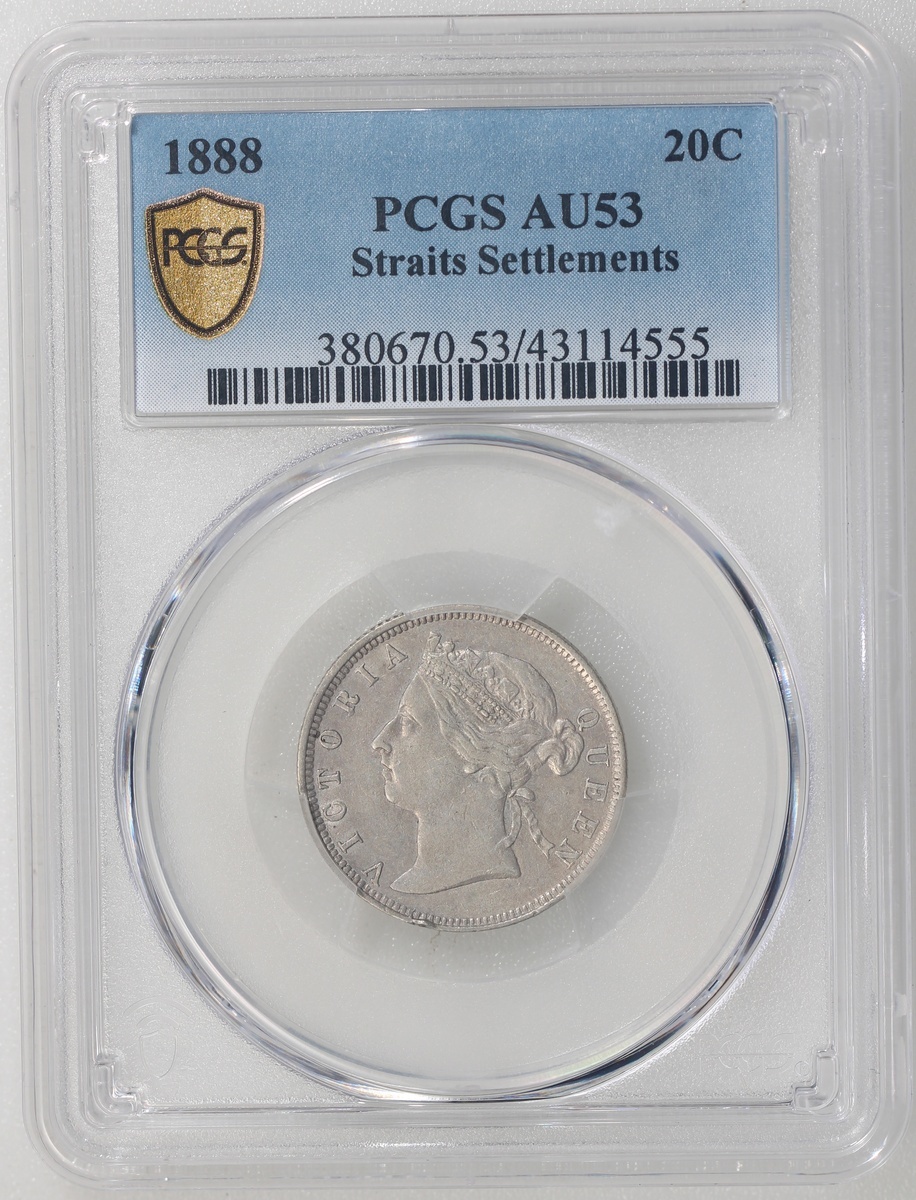 Straits Settlements, silver 20 cents, 1888, PCGS AU53, #43114555.