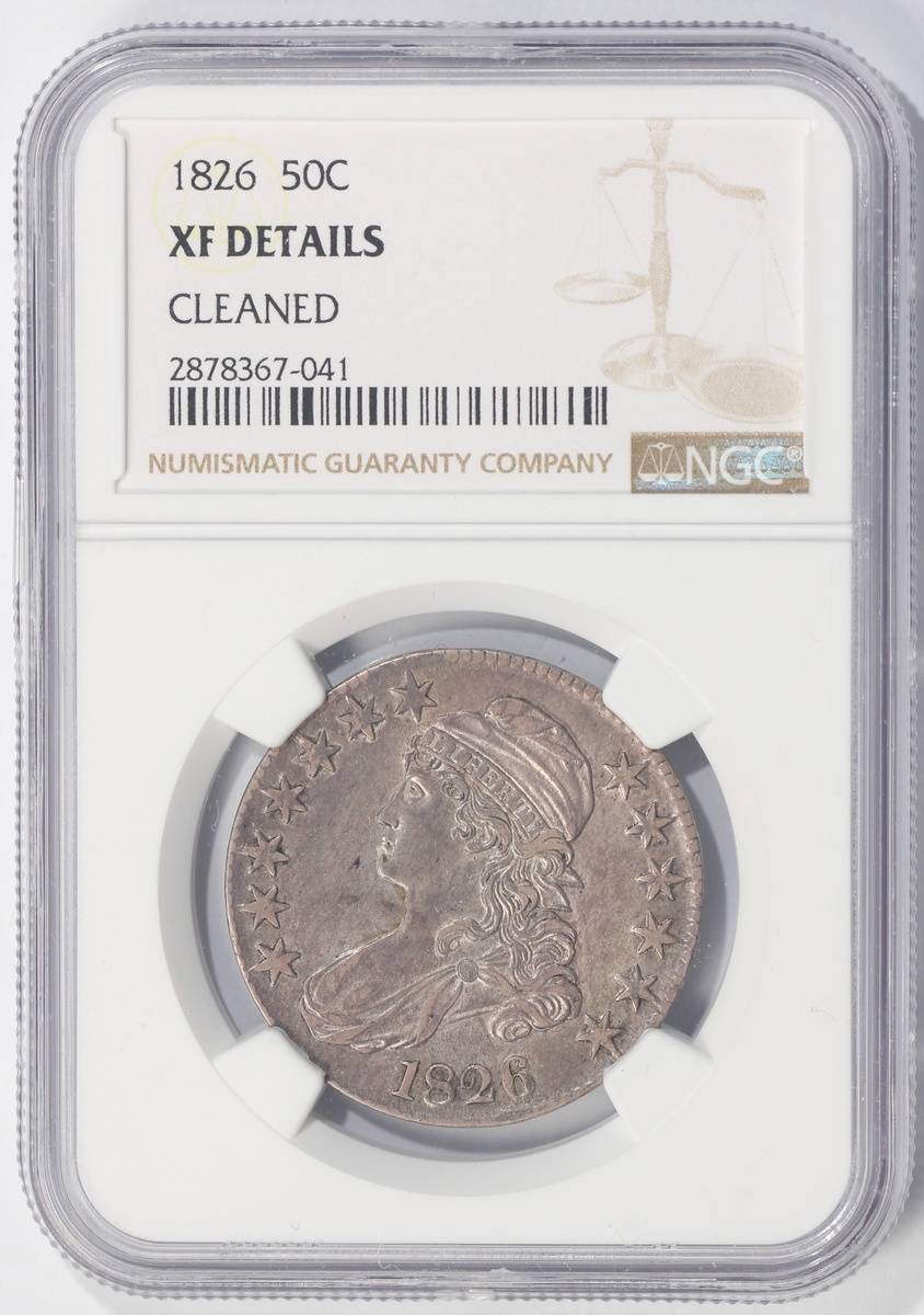 1826年美國帶帽頭像鷹揚銀幣半元,NGC XF Details,#2878367-041