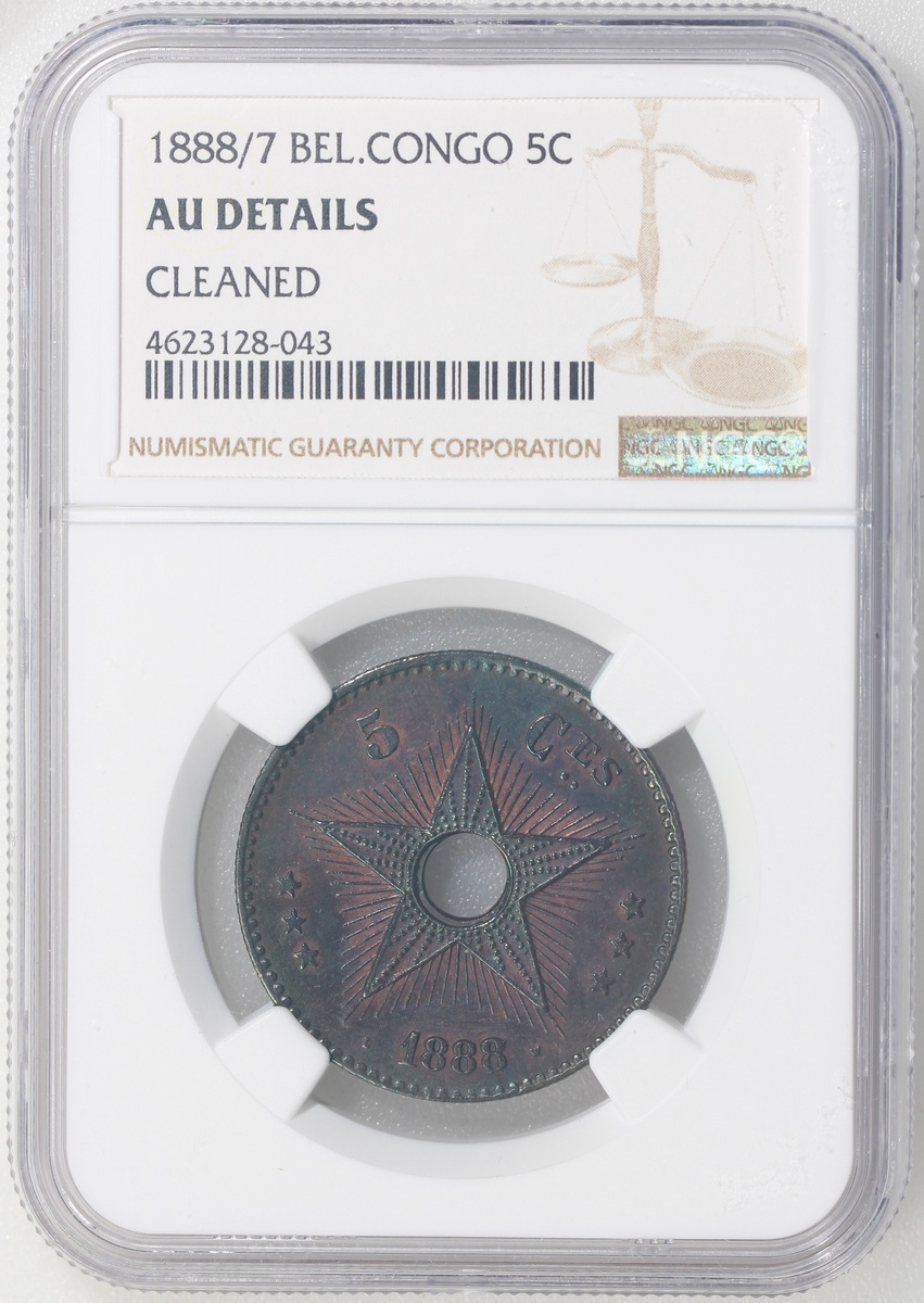 世界銅幣2枚一組,包括1816A奧地利1 Krueuzer,及1888/7年比利時剛果5分,分別評NGC UNC Details有環境損害及AU Details有清洗,#4623128-051及#4623128-043