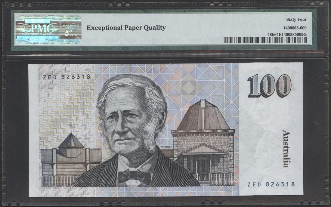 1985年澳大利亞100元,編號ZED826318,PMG 64EPQ