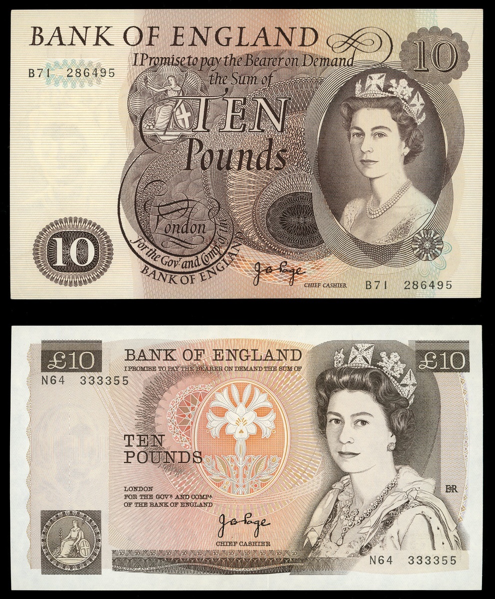 Great Britain: Bank of England, lot of 2x 10 pounds: 'Lion and Key', #B71 286495 and 'Nightingale', #N64 33355, both signed by Page,