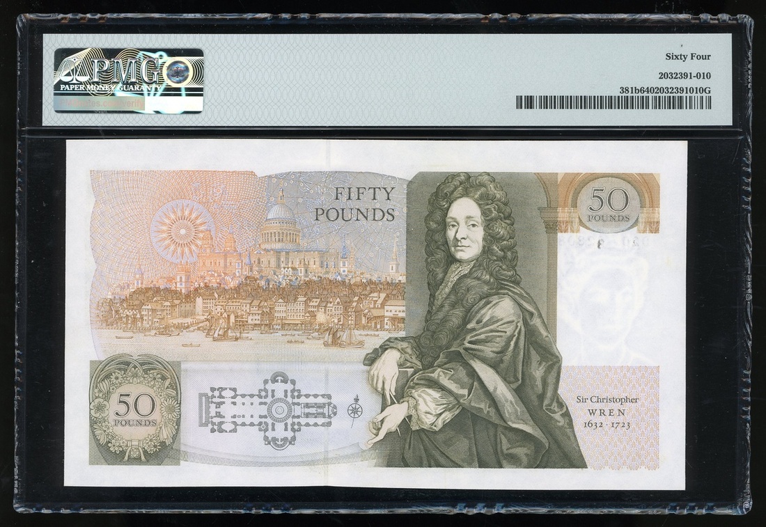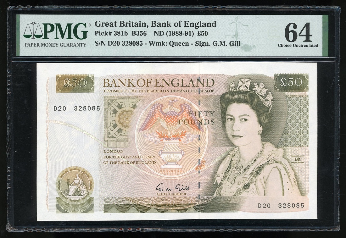 1988-91年英倫銀行50鎊,無日期,編號D20 328085,PMG 64