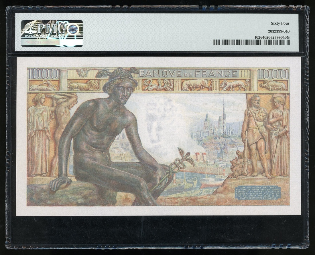 1945年法國1000法郎,編號X.4895 916,PMG 64