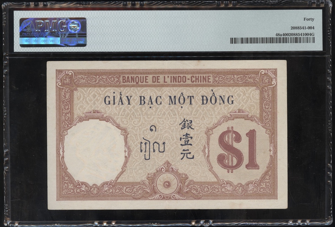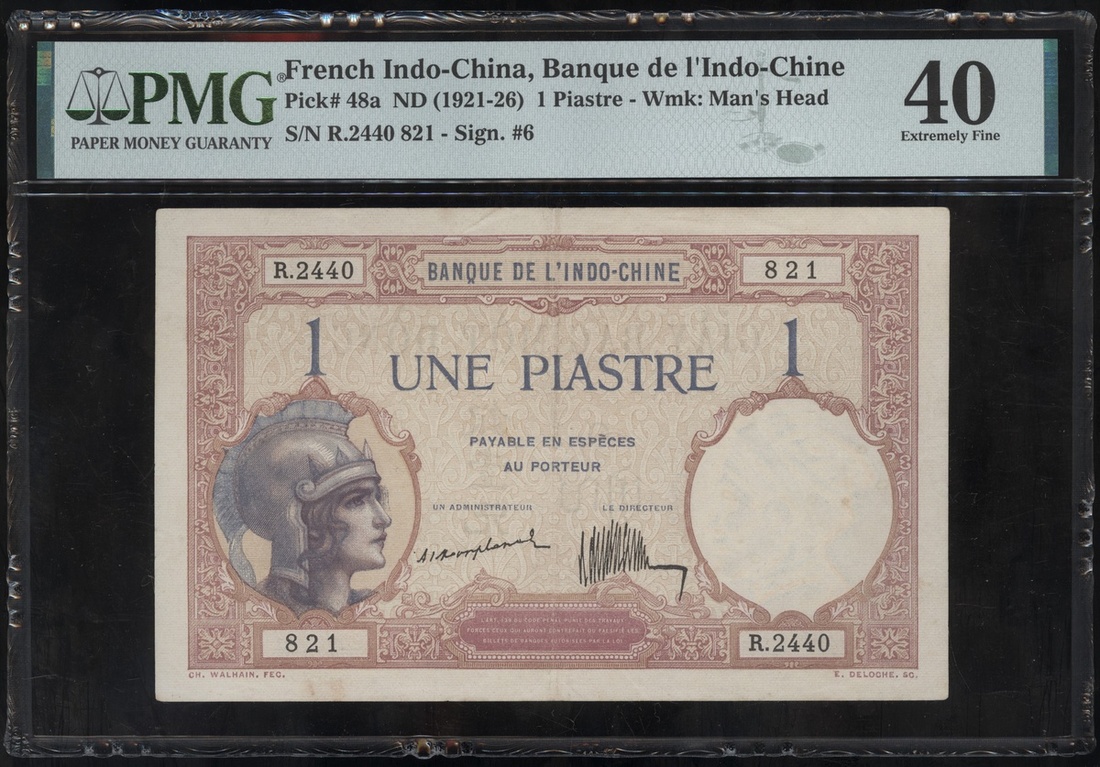 Banque de l'Indochine, 1 Piastre, ND(1921-26), serial number R.2440821, maroon and blue, head of Marianne at left, (Pick 41a), PMG 40 Extremely Fine