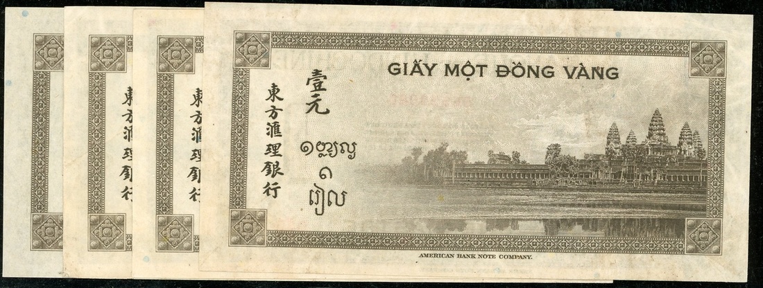 1945年法屬安南1盾4枚一組,其中一枚評PCGS Gold Shield 64,其餘AEF至AU