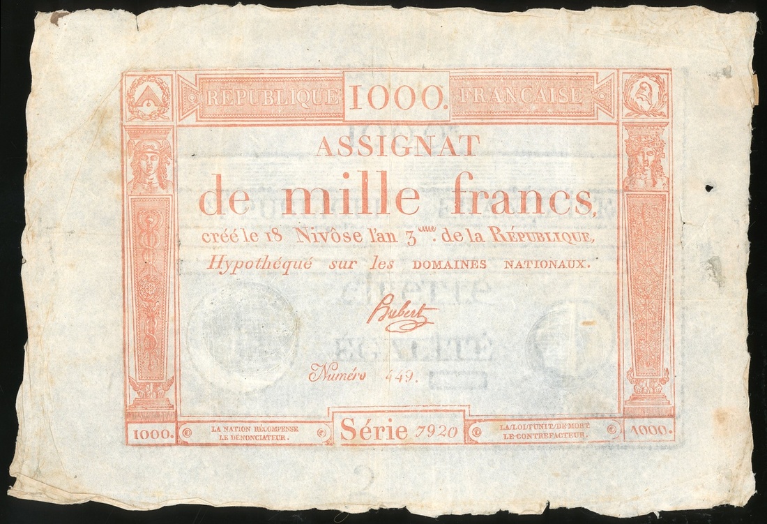 1799年法國大革命時期臨時紙幣1000法郎及2009法郎,AF