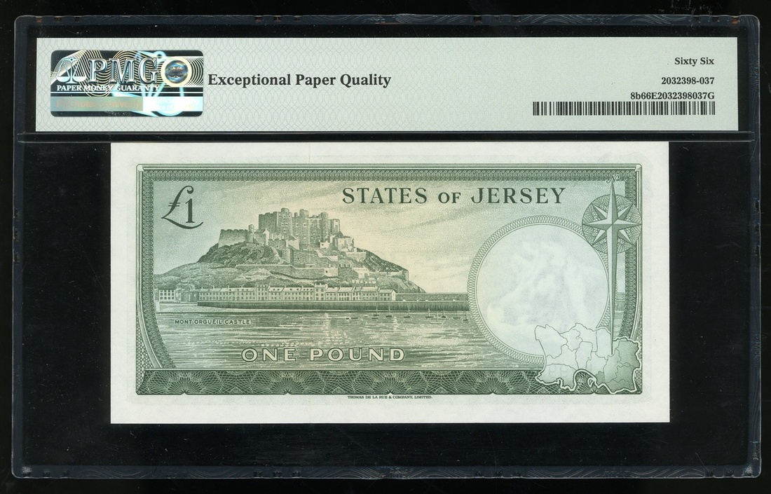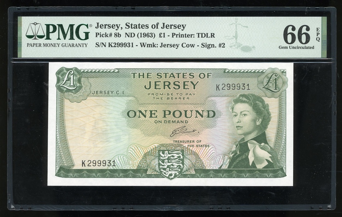 無日期(1963)澤西島1鎊,編號K299931,PMG 66EPQ