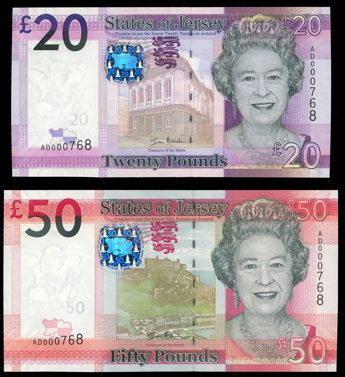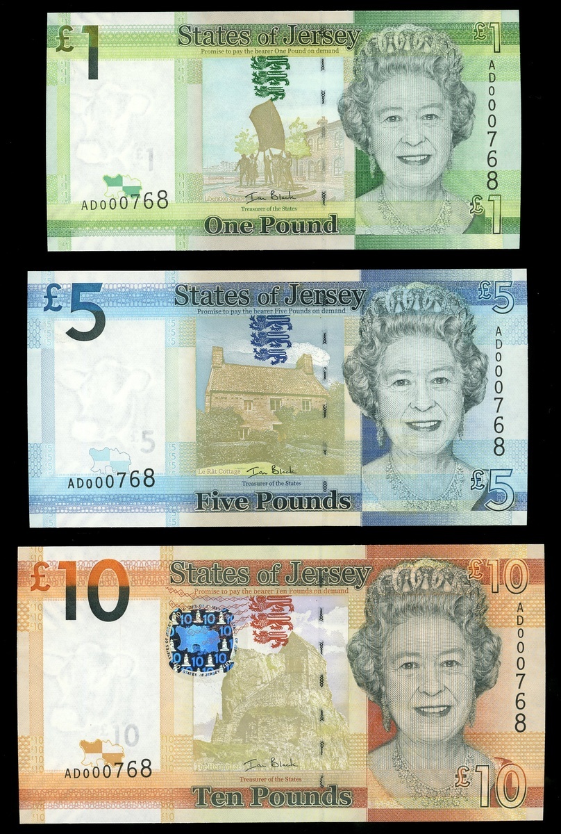 無日期(2012)澤西島1,5,10,20,50鎊,全編號AD000768,UNC,連原裝套